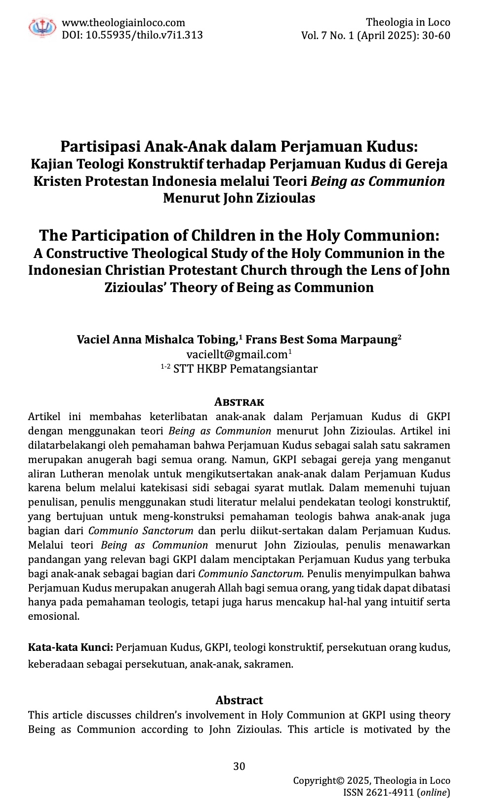 View Vol. 7 No. 1 (2025): Theologia in Loco