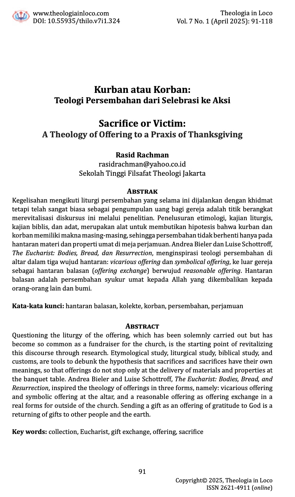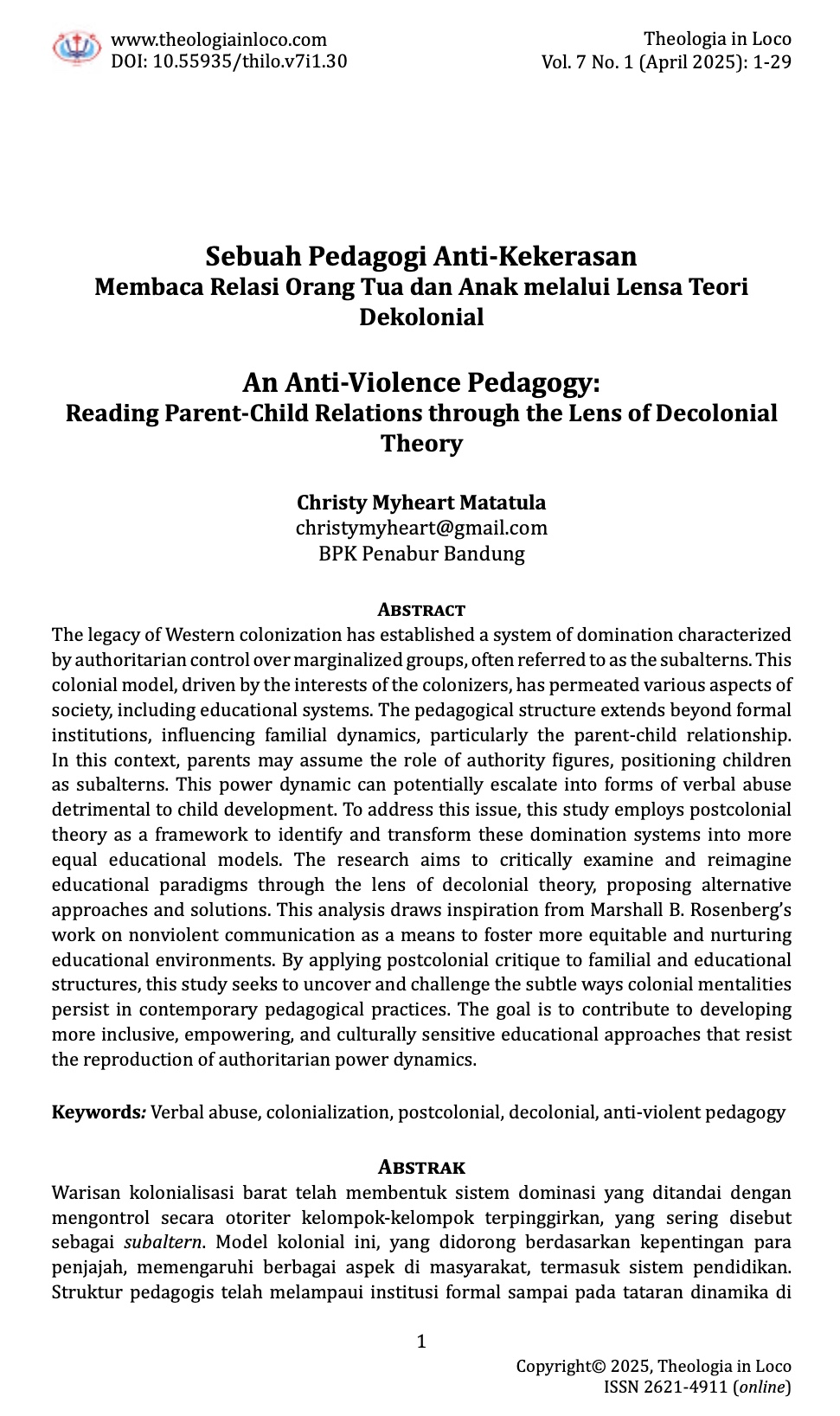 3. Vol. 7 No. 1 (2025): Theologia in Loco